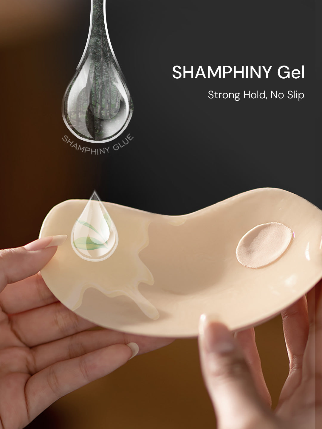 Use the lower edge of the adhesive bra to lift and support the breasts naturally.