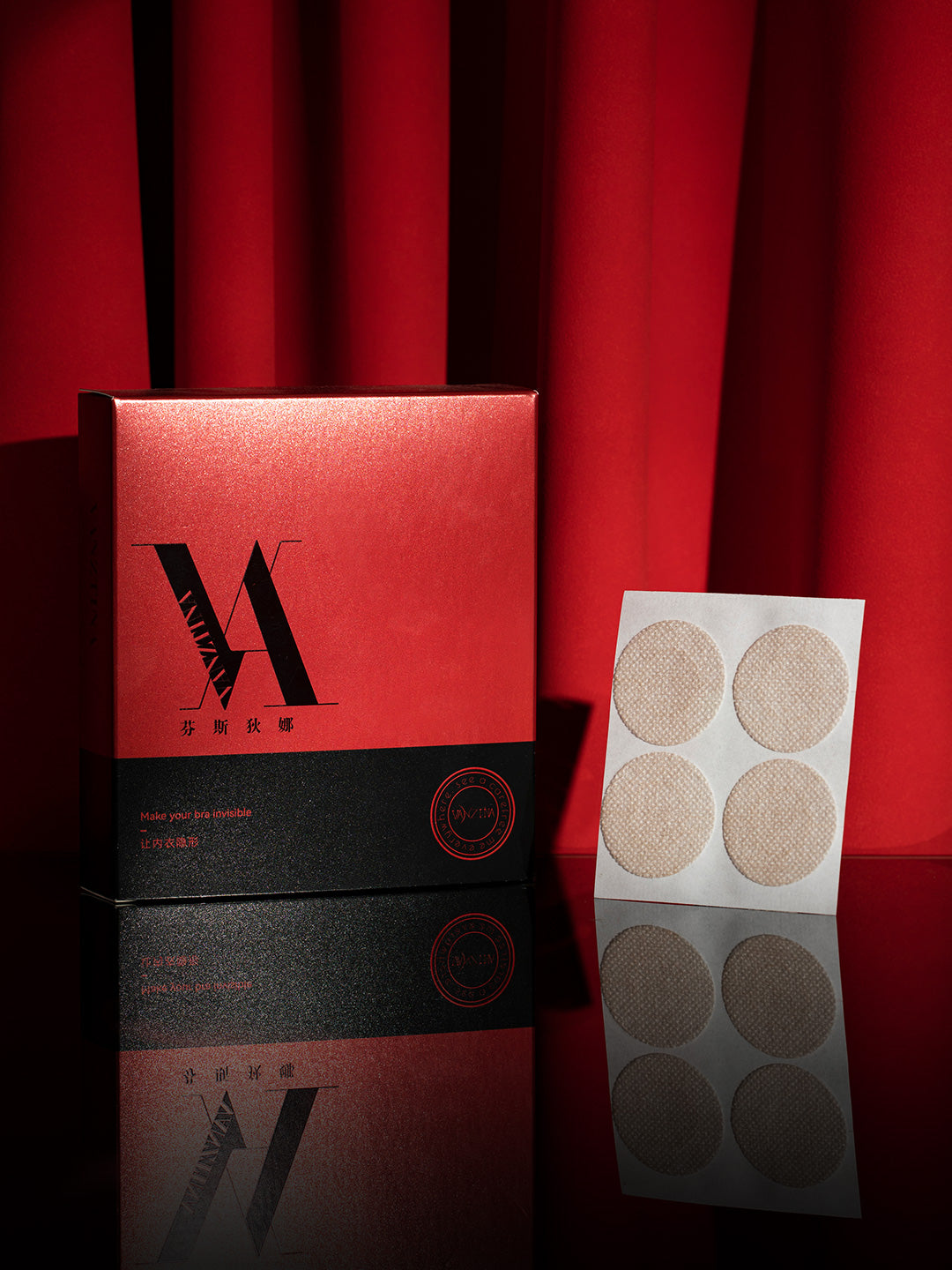 Use the lower edge of the adhesive bra to lift and support the breasts naturally.